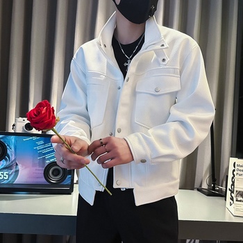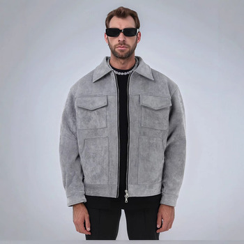 ربيع خريف موضة جديدة للرجال في الشوارع الأمريكية الراقية بلون واحد الشامواه متعدد الجيوب معطف عصري غير رسمي للرجال