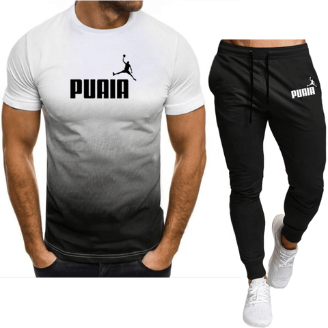 في الصيف ، تي شيرت رجالي رائج + بنطلون بدلة رياضية للرجال ، علامة تجارية ، طباعة الشعار ، عارضة أزياء قطنية قصيرة الأكمام
