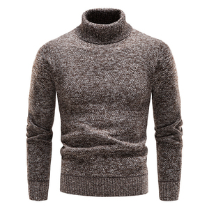 Suéter de lana de otoño e invierno para hombre, suéter cálido de cuello alto más grueso, ropa ajustada para hombre, jerséis elásticos de marca de lujo en negro y marrón