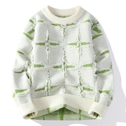 Suéter de cuello redondo de punto informal suelto de bloque de Color para hombres temporada de invierno diseño de marca de moda sensación pequeña audiencia