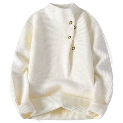 2025 Otoño Invierno suéter básico de Color sólido suéter de punto para hombre diseño de botones suéter de punto suave versátil