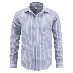 Camicia a maniche lunghe da uomo senza contrassegni, camicia Casual e senza ferro da uomo in seta di ghiaccio a righe, Top Business di alta qualità e alla moda