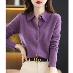 Giacca Cardigan in maglia di lana da donna maglione con colletto a Polo allentato Pullover con bottoni in maglia di colore solido esterno francese 2023 nuova primavera
