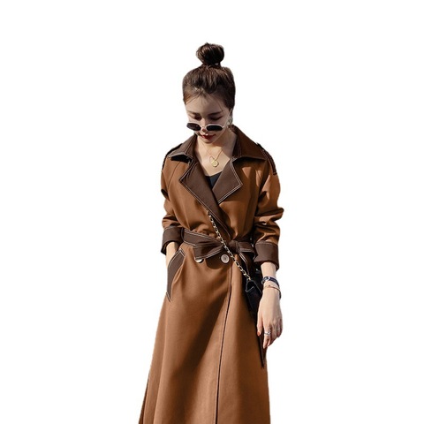 Contrasting Stitching Jackets Women's Mid-length Spring Autumn 2021 New Popular Loose Temperament Windbreaker Women's Clothing